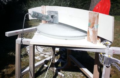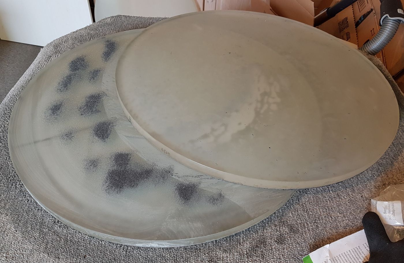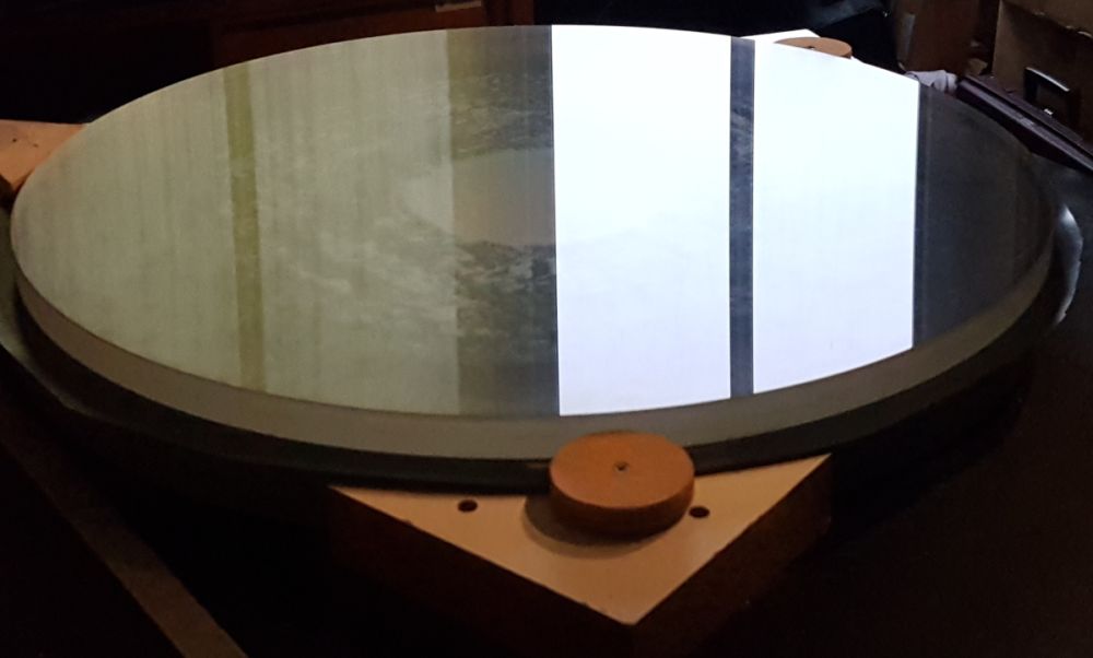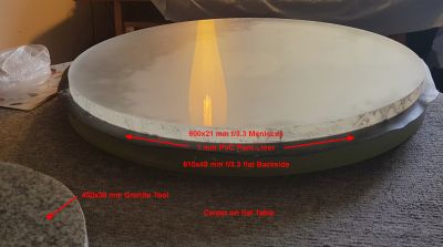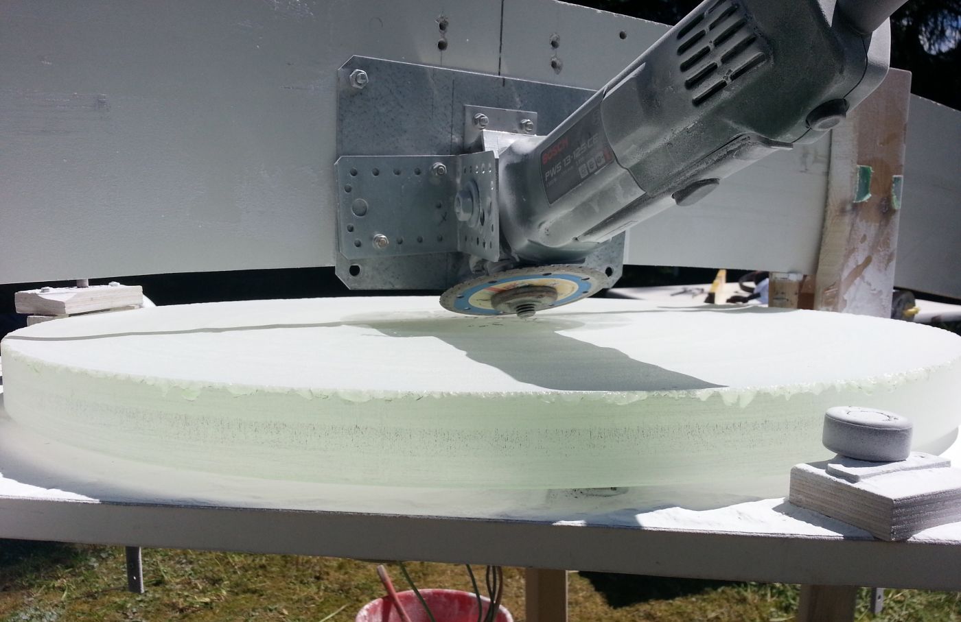 Grinding with #320 and Microgrit 25 my with the 40 cm granite tool. The meniscus mirror is frequently rotated against the "support mirror". |