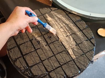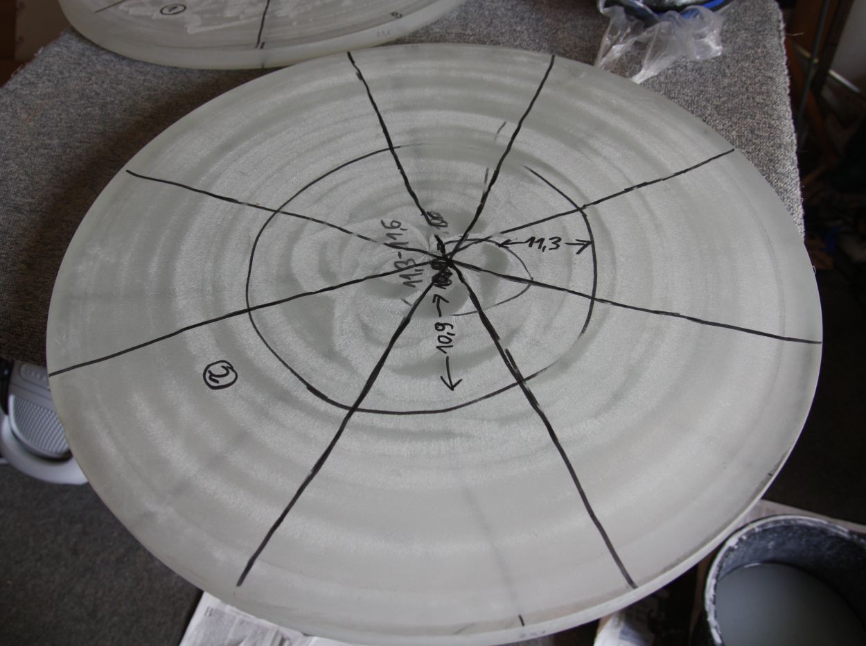 Fitting the concave frontside on the convex backside to grind out the residuals from the rough machine generating. Diameter: 600 mm |