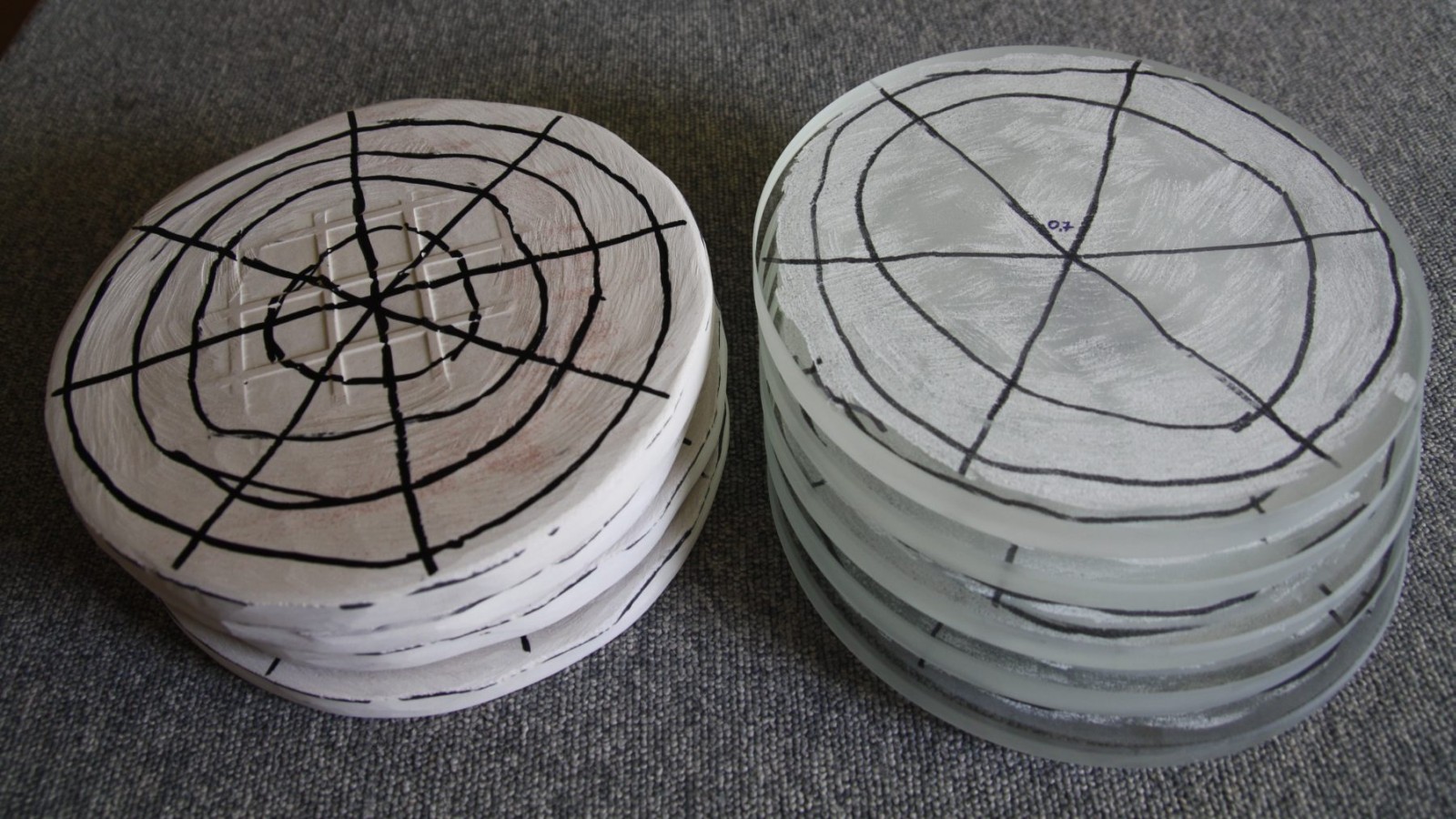 The fabrication of the 5+1-lets starts The mirror making novices and me took 18 mm thick borosilicate glass, the lightweight specialists chose 15 mm thick blanks. |