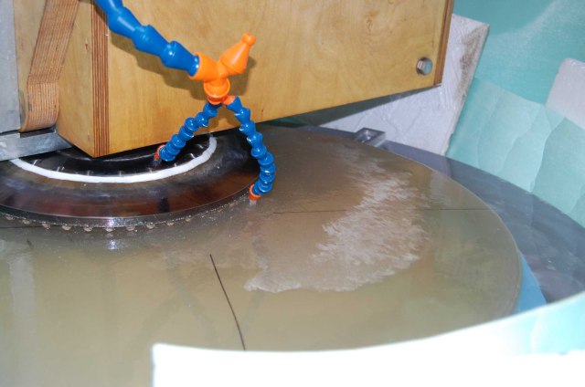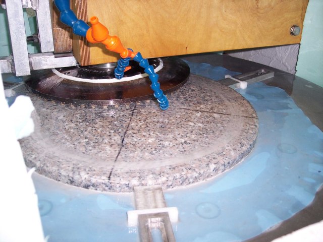 Fine grinding of the granite tool on the machine.