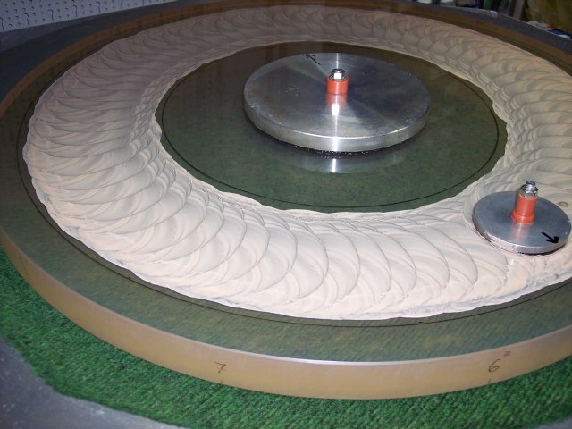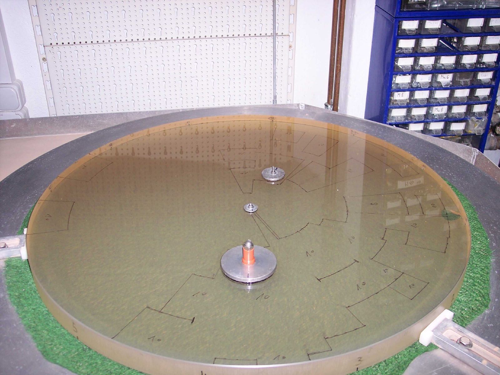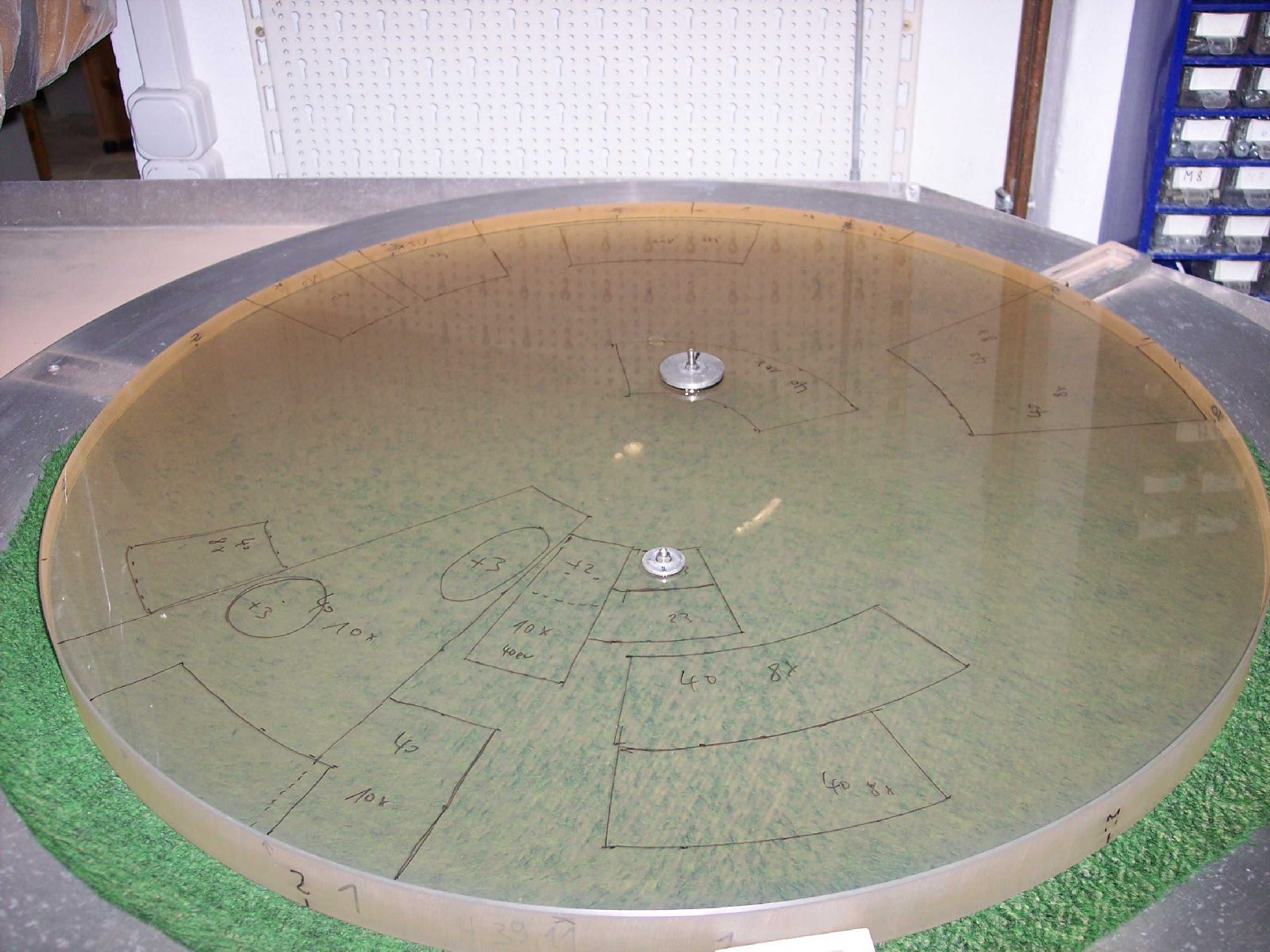 The finished tool (diameter: 490mm) with channels for better abrasive distribution and against sticking the tool on the blank.