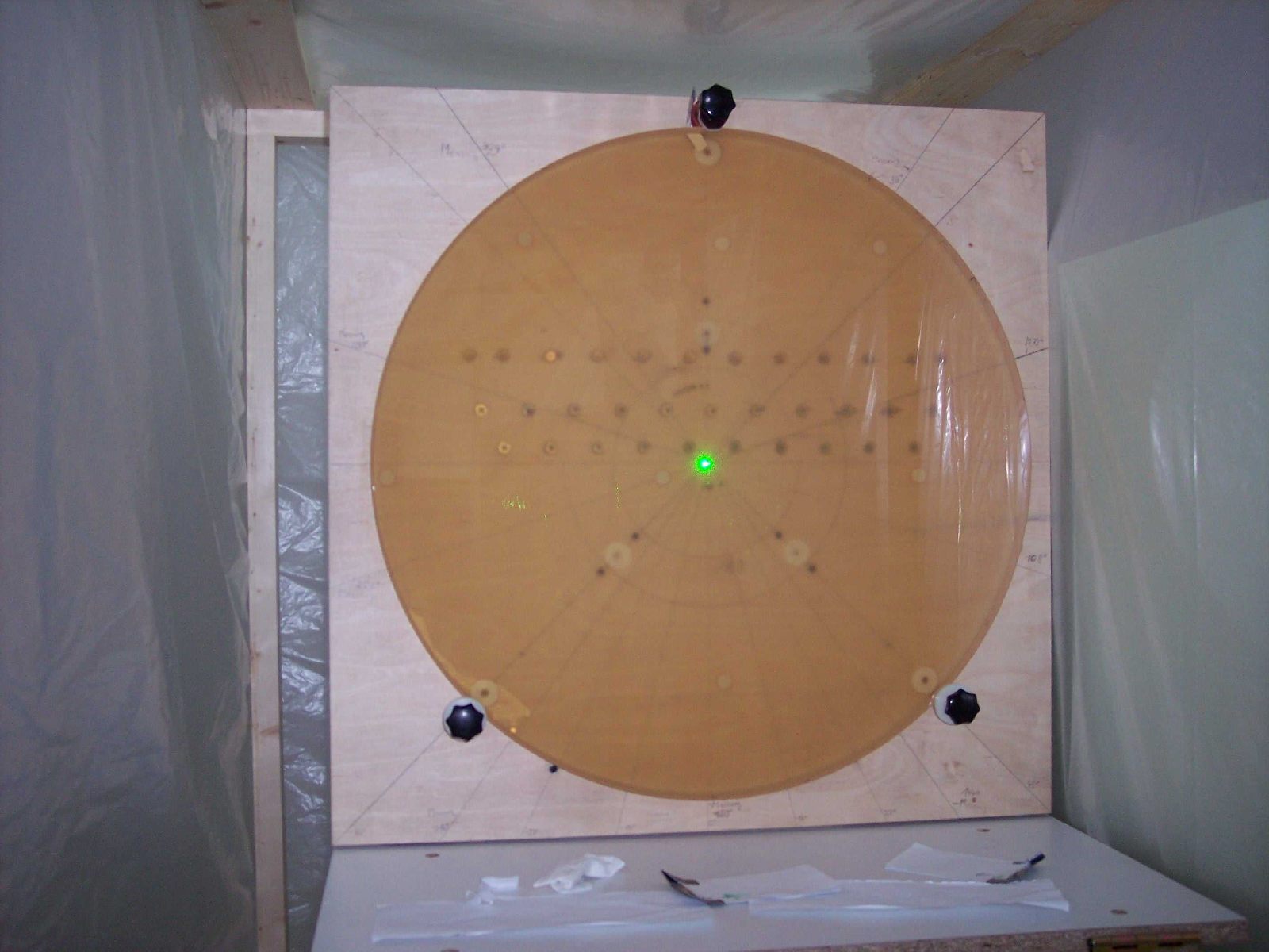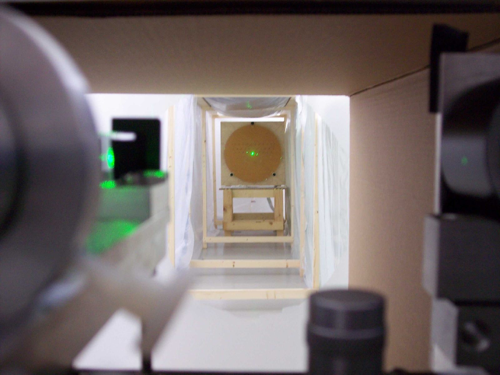 A closed tunnel from the mirror to the interferometer was built, to beat air turbulence in the room. This is essential for a repeatable measurement.