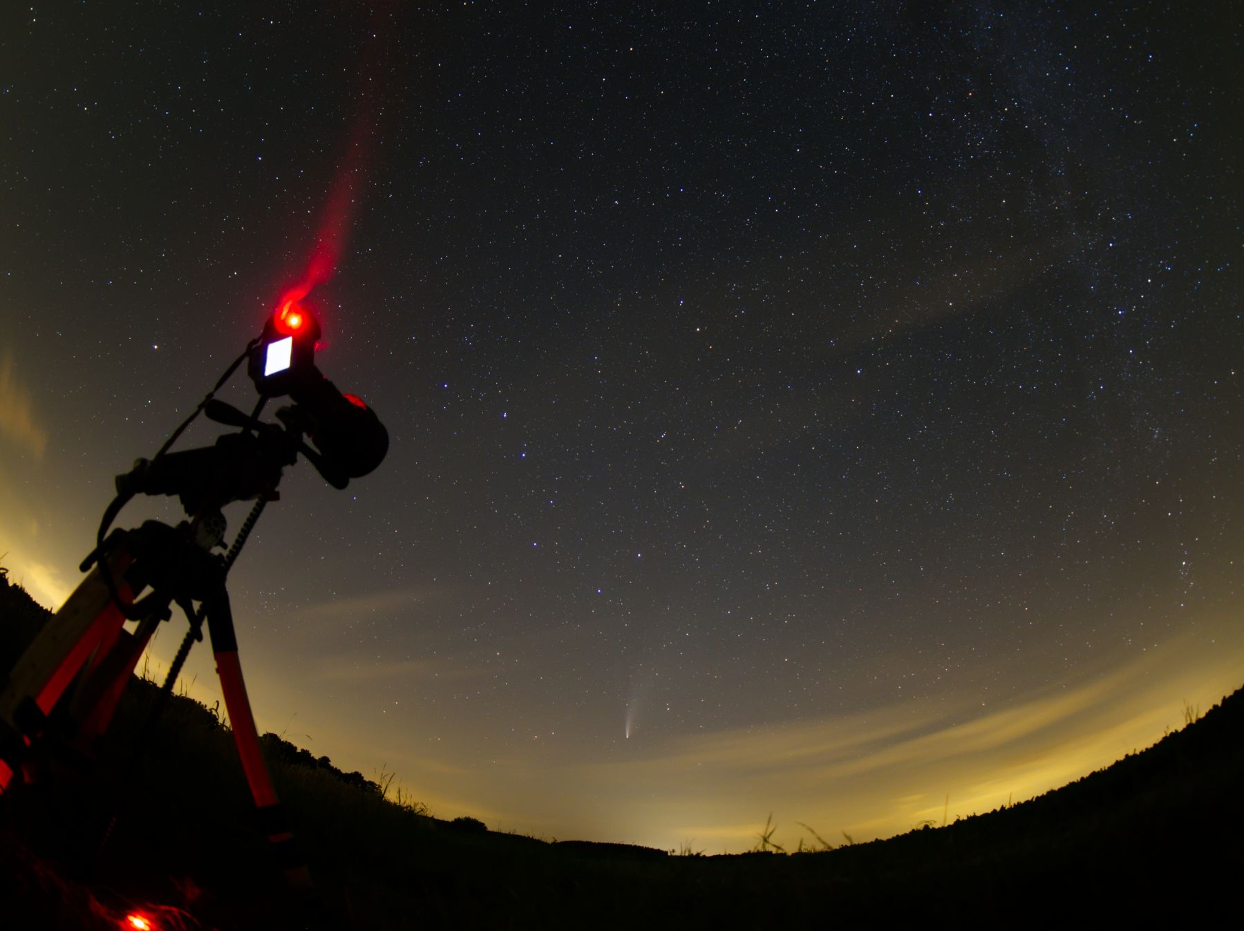 Oberbayern, 20. Juli. 2020, Bortle 5-6 Making of Bild mit Olympus E-M10 Mark III + Olympus 12 mm f/2, 12x15 s = 3 min @ISO 400. Stativ ohne Nachführung Making of Bild dito mit Olympus 8 mm Fisheye f/1,8, 10x15 s = 2m45s @ISO 800. |