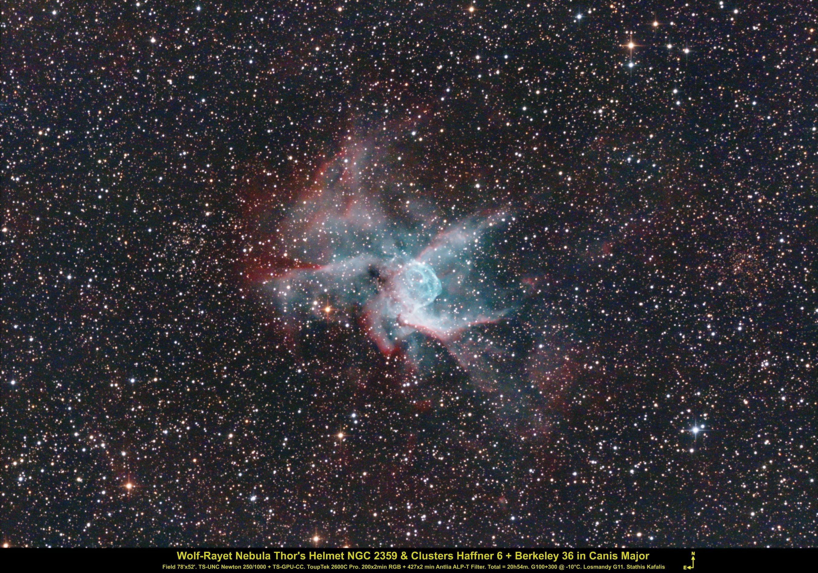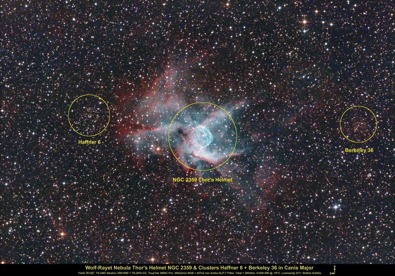 Wolf-Rayet Nebel Thor's Helm NGC 2359 & Sternhaufen Haffner 6 + Berkeley 36 in Canis Major