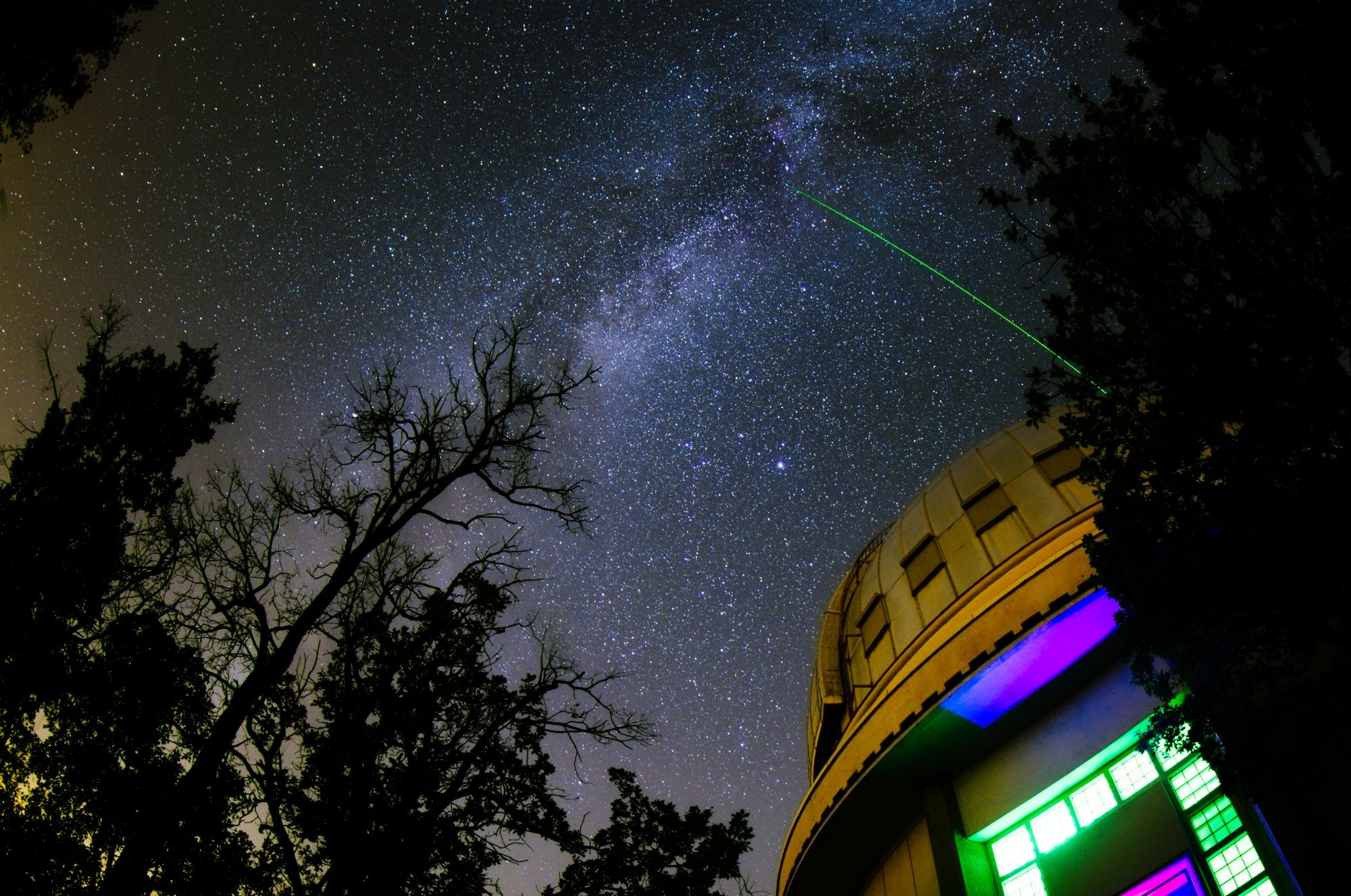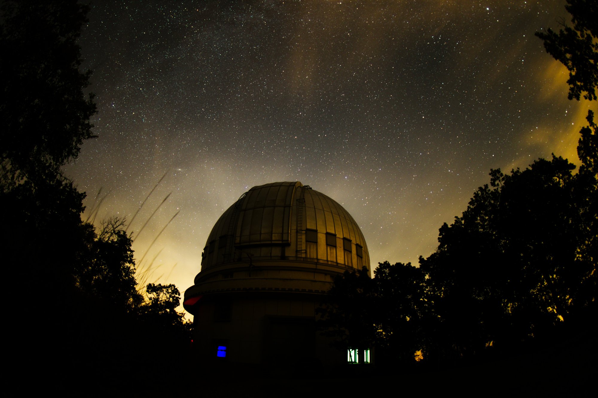 Observatorium Kuppel Richtung Zentrum der Milchstraße im Skorpion und Schützen, mit Jupiter und Saturn