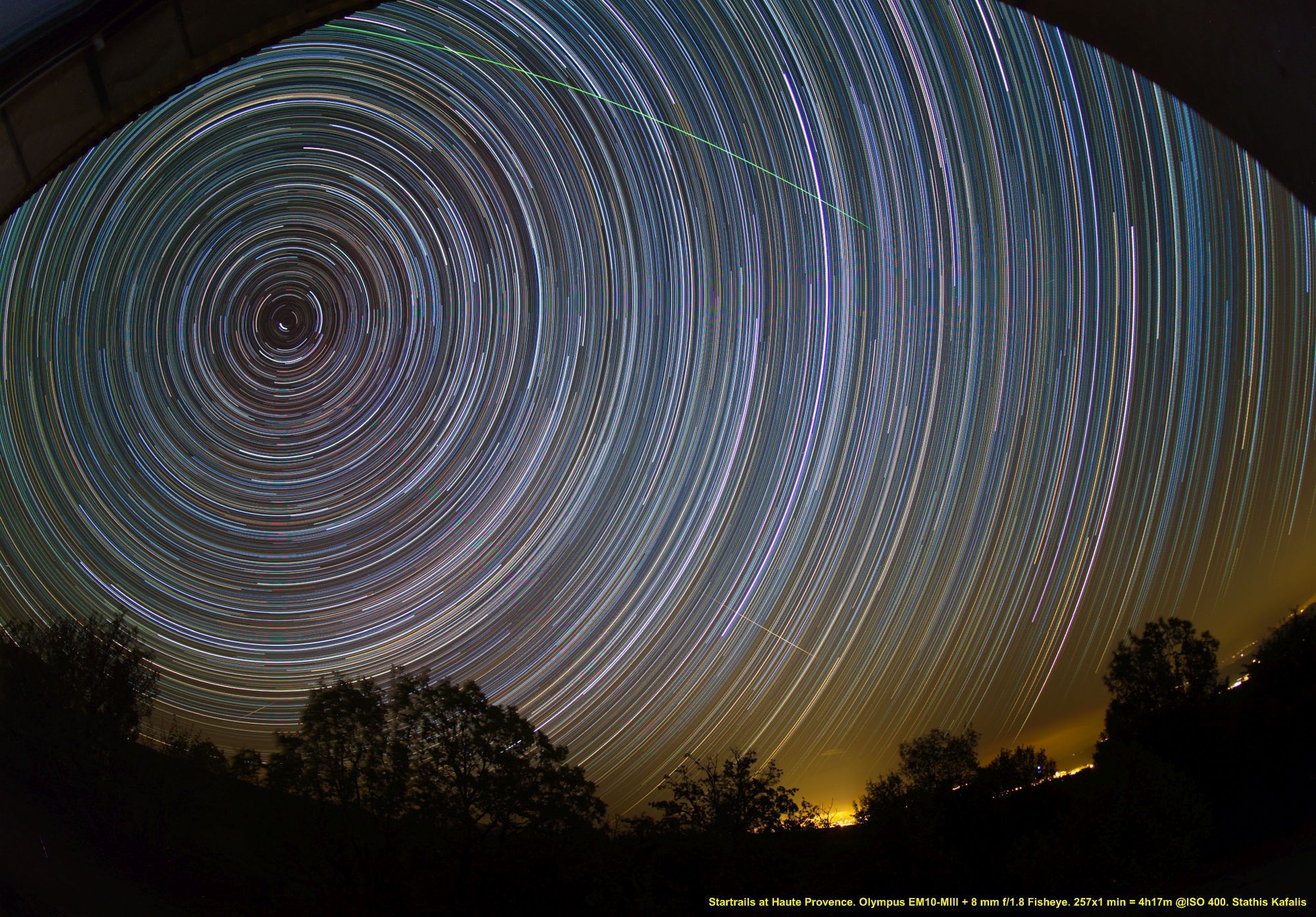 Himmelsnordpol Strichspuren Haute Provence April 2022, Bortle 3-4 Stack mit Sequator. Entwicklung mit Raw Therapee Dazu das Video (8MB .mgp4), erzeugt mit "Startrails". Haute Provence Startrails 74x1 min @ISO 400 |