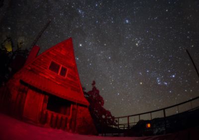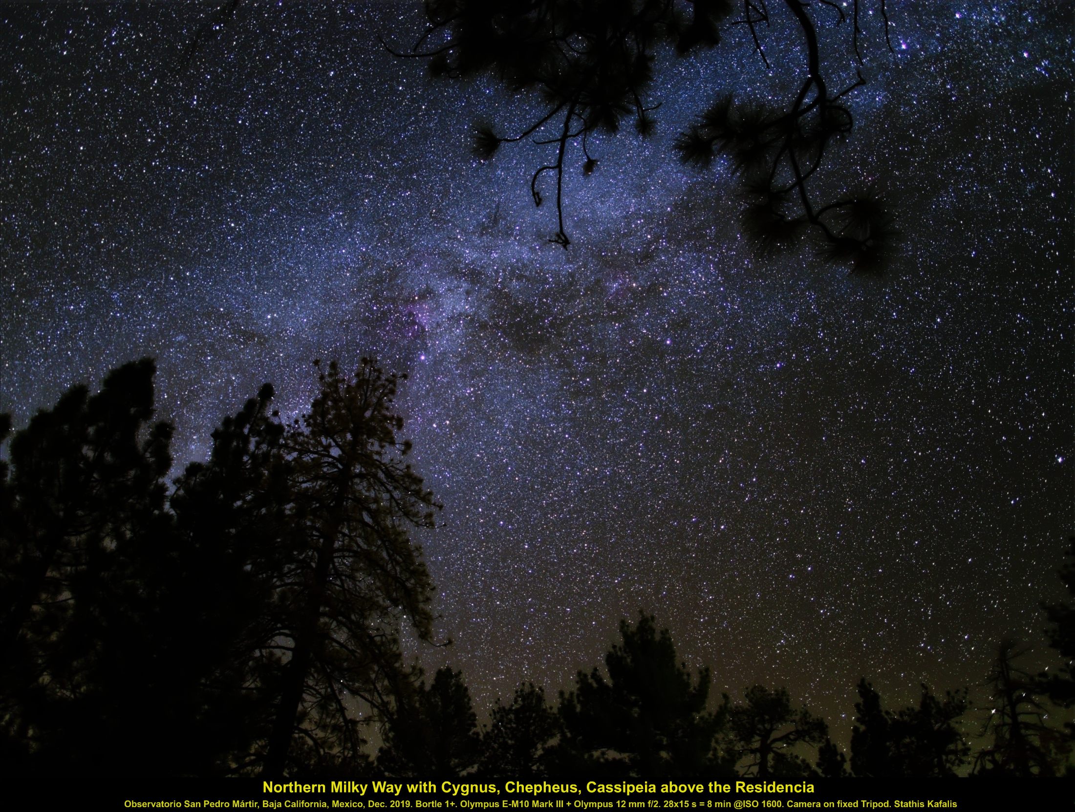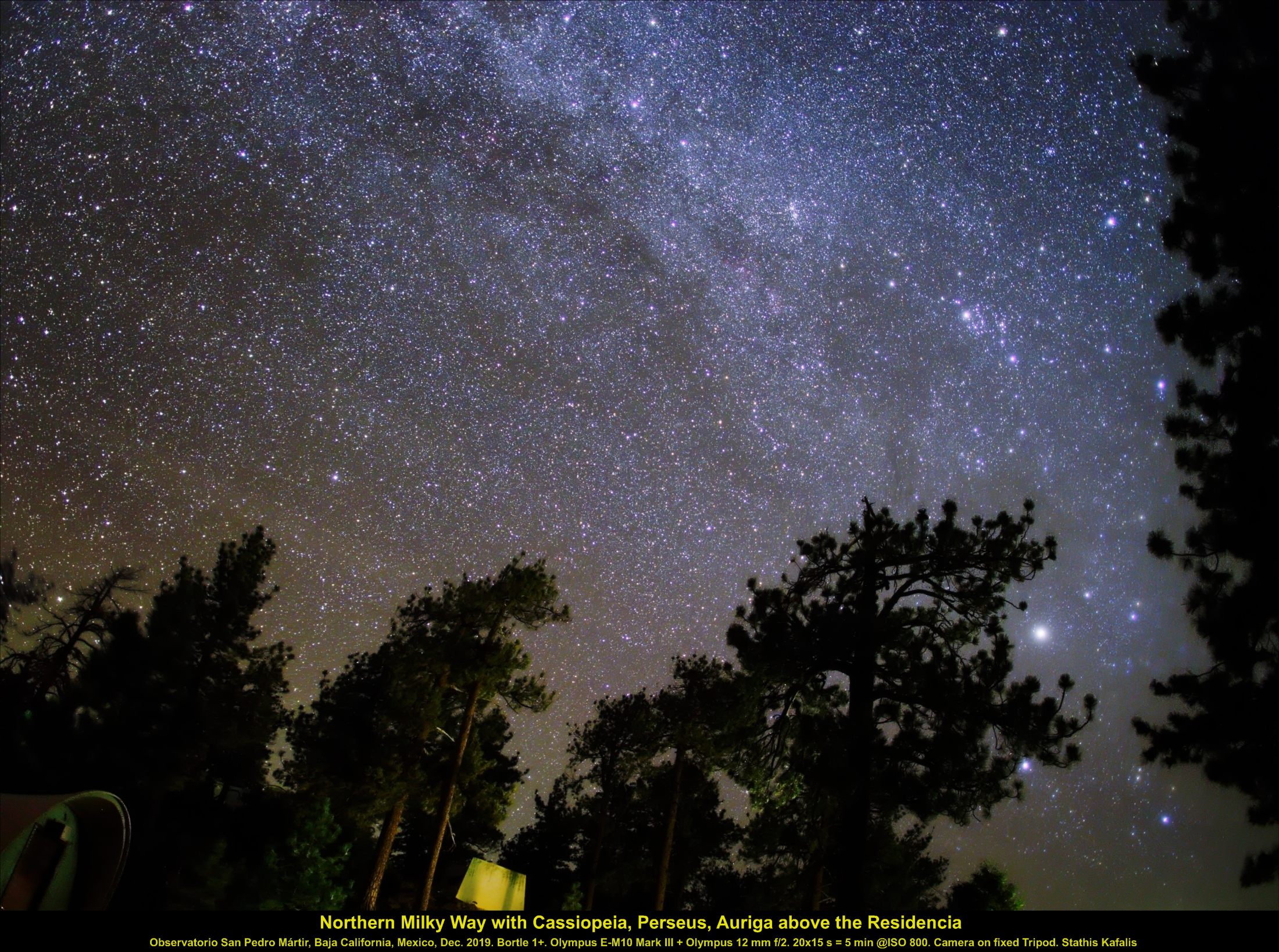 Observatorio San Pedro Mártir bei -7°C auf 2.700 m, Baja California, Mexico, Dez 2019. Bortle 1+ Residencia in tiefem Schnee mit nördlicher Milchstraße, dito mit 21x20 s = 7 min |