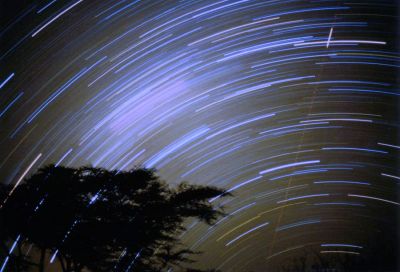 Southern Cross (in the tree) + Coalsack. Kenya 07. Jan 1992 50 mm lens 1:1.7+ Pentax K1000. Ca. 30 minutes on Ektachrome 100 |