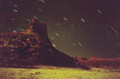 Valle de la Lunar Atacama at Moonlight. Chile, Nov. 1994 50mm 1:1.8 + Pentax K1000. Ca. 15 minutes on Ekrarchrome 1600 |