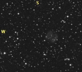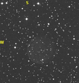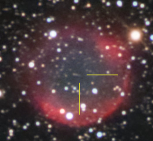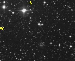69 = PK 76+1.1 Cygnus U2000: 119 / A1 24" f/4,1 Dobson fst: 6m6, Bortle: 2-3, sehr transparent, Seeing: 3-4, 2000 m hoch. 17. Sep. 2004 Feld mit DSSII- Ausdruck schnell gefunden. Mit 9 mm Nagler (280x) ohne Filter an der Stelle ein Sternchen ca. 15m8. Mit OIII-Filter immer wieder versucht und ca. 3 mal was kleines Rundes aufblitzen gesehen, direkt NW vom Stern, der im OIII nicht sichtbar ist. Sehr klein für einen Abell und knallhart am Limit. Frank sieht ihn auch nur ab und zu aufblitzend. Im 7 mm Nagler (360x) + OIII auch 2x aufgeblitzt, fast etwas leichter, da das Teil so klein ist. Sehr schwer! |