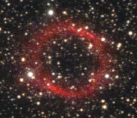 Abell 53 = PK 40-0.1 Aquila U2000: 206 / 85R 24" f/4,1 Dobson fst: 6m4, Bortle: 3, Horizont Dunst, Seeing: 3-4, 2000 m hoch. 23. Aug. 2001 Im 32 mm Wide Field (80x) ohne Filter nichts. Im 15 mm Panoptic (170x) + OIII sofort zu sehen als runde homogene Scheibe nut ca. Ø=30". Nach außen recht gut definiert aufhörend. Nur indirekt, aber sicher. Im 9 mm Nagler (280x) + OIII schwerer, aber schöner, wenn man sich an das dunklere Gesichtsfeld gewöhnt hat (kein Ring erkannt). |