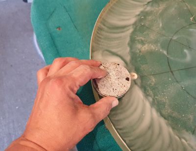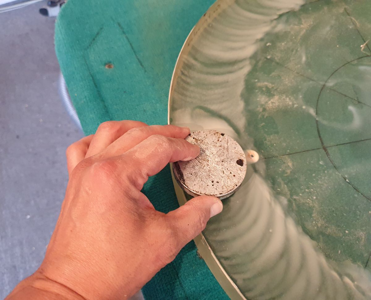 Subsequently smoothen out the canyon with a small polishing tool, which is larger than the thumb, with circular movements. I cut away the pitch at one edge of the minitool, to maximize the action at the very edge. Again run along the edge as near as you can without touching too much the edge itself (see Video 2MB). |