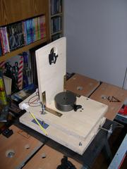 Dieser Foucaulttester wurde anläßlich unseres 203/1270-Selbstschliffs für die Parabolisierungsphase gebaut. Das war noch vor unserem ersten Teleskopselbstbau und entsprechend ist die handwerkliche Ausführung noch etwas grobschlächtig.