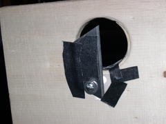 Zu dem Tester haben wir noch eine für unseren 8"-Rohling passende höhenverstellbare Spiegelhalterung gebaut und mit Stoffresten abgedunkelt. |