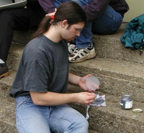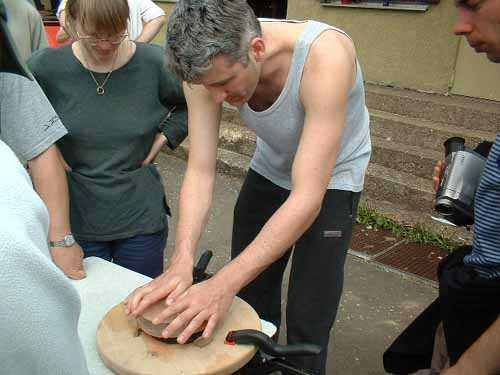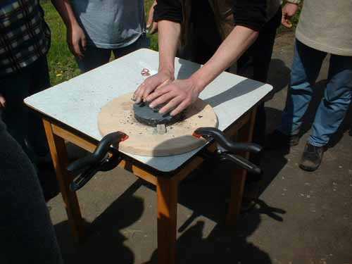 ![]() Hannes beim polieren. Das Stück Glas soll mal Bilder machen? |