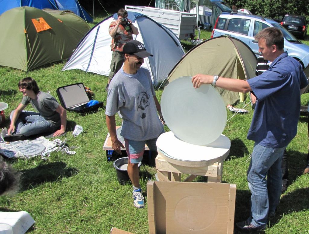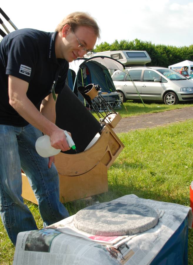 Weiterhin wurde der klassische Grobschliff an einem 13 cm gegen ein gleichgroßes Glastool MOT praktiziert. Leider habe ich davon keine Bilder. Hat jemand welche, die ich hier verwenden darf? Auch andere Bilder rund um die Spiegelschlieifaktion sind gerne willkommen.