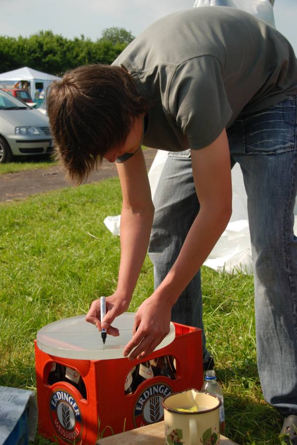 ![]() Marcel brachte seinen vorgefrästen 60 cm Rohling mit, konnte jedoch nicht daran schleifen, da der Mann mit dem versprochenem Tool doch nicht zum ITV kam |