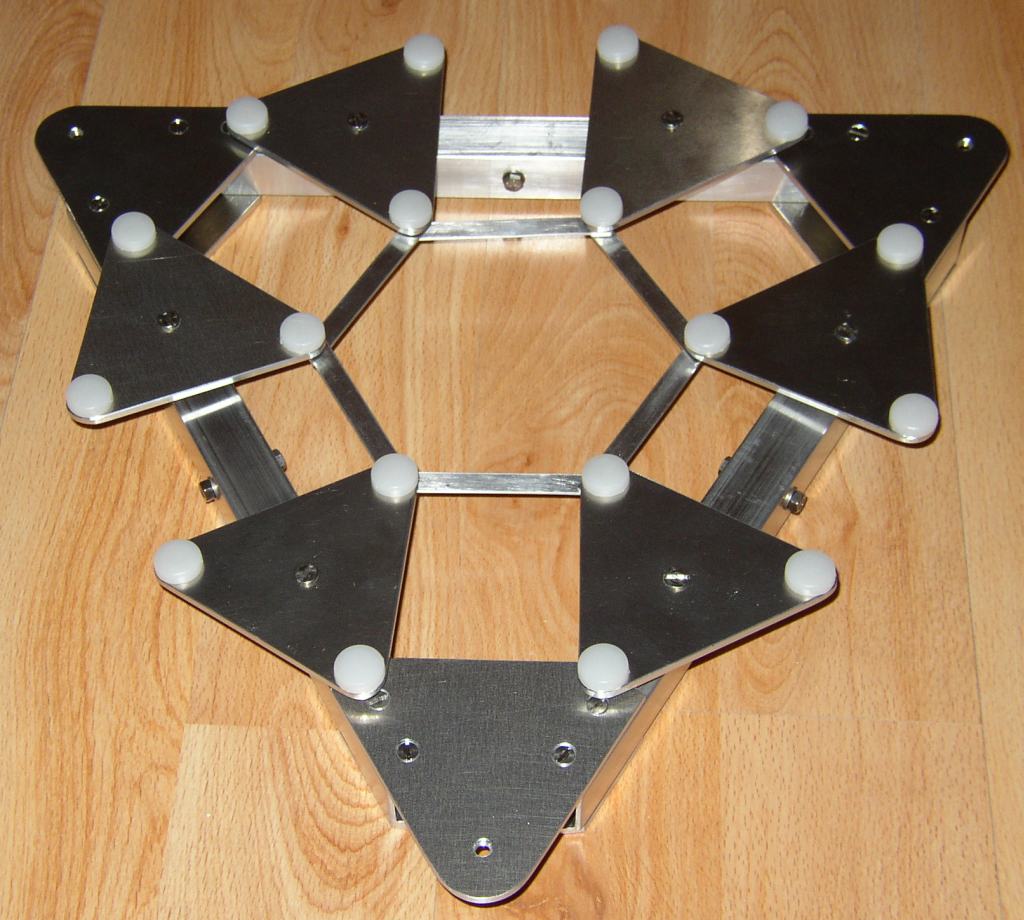 Die Spiegelzelle ist als 18-Punkt-Floatingsystem ausgeführt. Die Anordnung der Auflagepunkte wurde mit dem Computerprogramm PLOP von Prof. David Lewis (Toronto) berechnet. Hier sind die Einzelteile dargestellt und wie sie sich zusammenfügen.