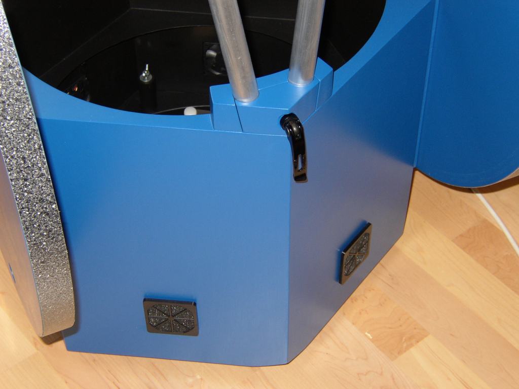 Die relativ hoch gebaute Spiegelbox kann, obwohl sie unten offen ist, doch dazu führen, dass sich mangels Luftaustausch eine optisch störende Layerschicht über der Spiegel-oberfläche bildet. Um dem entgegenwirken zu können, habe ich eine mechanische